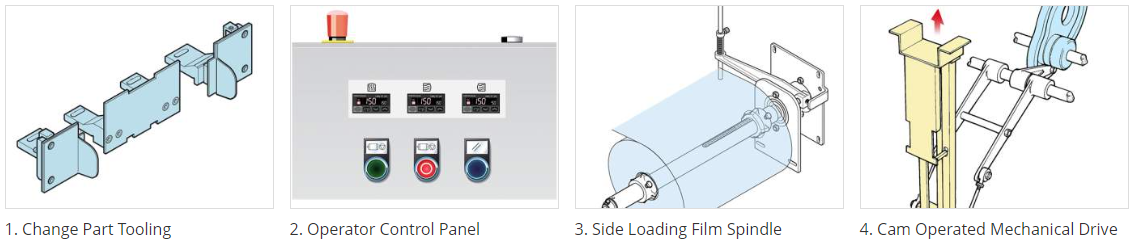 Seria Evo została zaprojektowana jako podstawowa, w pełni automatyczna maszyna do owijania ze zgrzewaniem podstawowym, zdolna do owijania z prędkością do 45 paczek na minutę. Seria ta sprawdzi się najlepiej w zastosowaniach nisko nakładowych oraz prototypowych. Urządzenie nie jest przystosowane do pracy w systemie trzy zmianowym, ale rekompensują to koszty zakupu, eksploatacji i rozmiar samego urządzenia.
