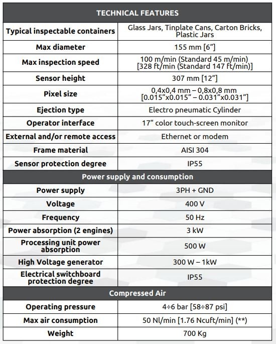 Raybox potrafi wykrywać i odrzucać ciała obce o wysokiej gęstości, takie jak metal, szkło, ceramika, kamień, guma Viton itp. Maszyna może również eliminować zdeformowane pojemniki, przewrócone pojemniki, defekty szkła, niskie napełnienie oraz nieprawidłowo zamknięte kapsle twist-off.