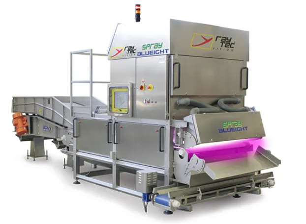 Spray to sortownik optyczny wyposażony w kamery o bardzo wysokiej rozdzielczości, który bada produkt na przenośniku taśmowym.