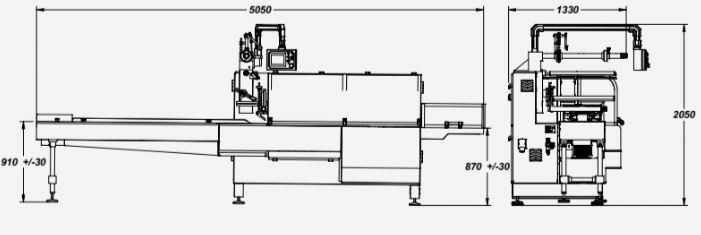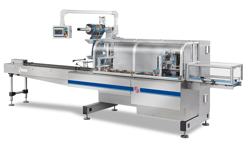 Maszyna pakująca pozioma typu "flow pack", która umożliwia uzyskanie opakowań uszczelnionych z trzech stron, wykonanych z elastycznego materiału opakowaniowego w rolkach.