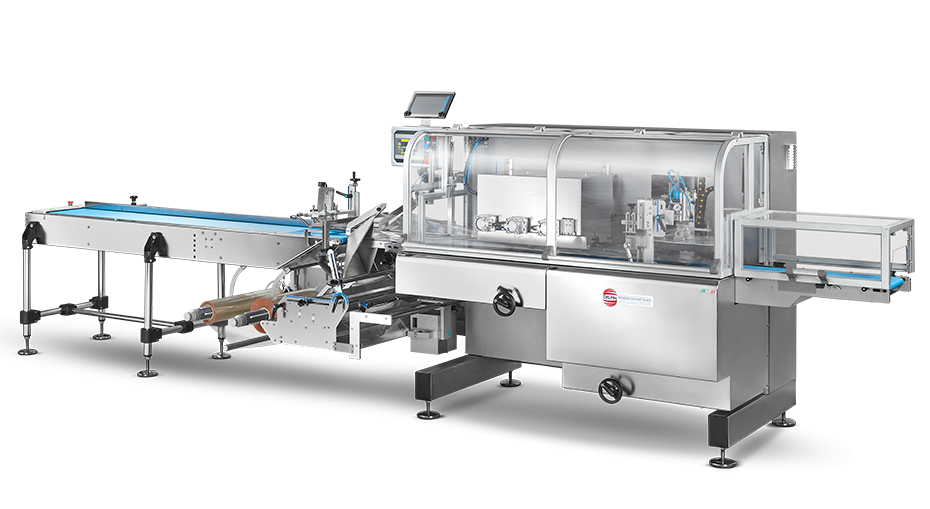 Maszyna pakująca pozioma typu "flow pack", która umożliwia uzyskanie opakowań uszczelnionych z trzech stron, wykonanych z elastycznego materiału opakowaniowego w rolkach.