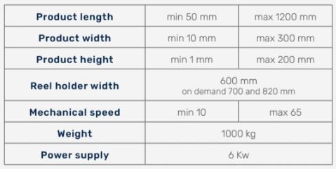 • Zgrzew poprzeczny z ruchem „box-motion” zamykającym szczęki o szerokości 300 mm (na życzenie 350 i 400 mm);