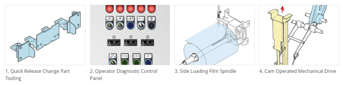 Połączenie solidnego systemu sterowania, panelu diagnostycznego operatora i narzędzi do szybkiej wymiany zapewnia wysoce elastyczną i wydajną maszynę produkcyjną.