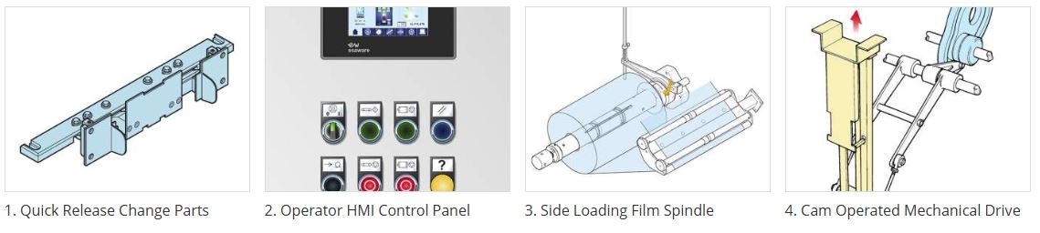 Dzięki systemowi sterowania PLC i interfejsowi HMI oraz oprzyrządowaniu do szybkiej wymiany w połączeniu udało się stworzyć wysoce elastyczną i wydajną maszynę produkcyjną.