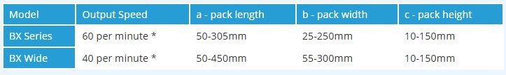 Seria BX to w pełni automatyczna maszyna do owijania ze zgrzewem podstawowym, zdolna do owijania z prędkością do 60 opakowań na minutę.